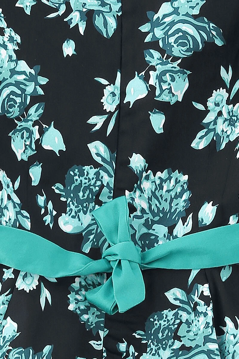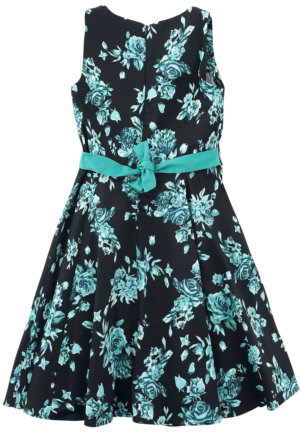 Das schwarze Kleid für den Rockabella-Nachwuchs ist über und über mit türkischen Blumen bedruckt. Mit den beiden Satinbändern, die an den Seiten eingenäht sind, kannst du wahlweise vorne oder hinten eine große Deko-Schleife binden. Der Black Rosaceae Swing Dress von H&R London wird mit einem verdeckten Reißverschluss am Rücken geschlossen. Das süße Kleid für Kinder besteht aus Baumwolle mit einem kleinen Elasthan-Anteil. Es steht von Größe 104 bis 152 zur Verfügung.