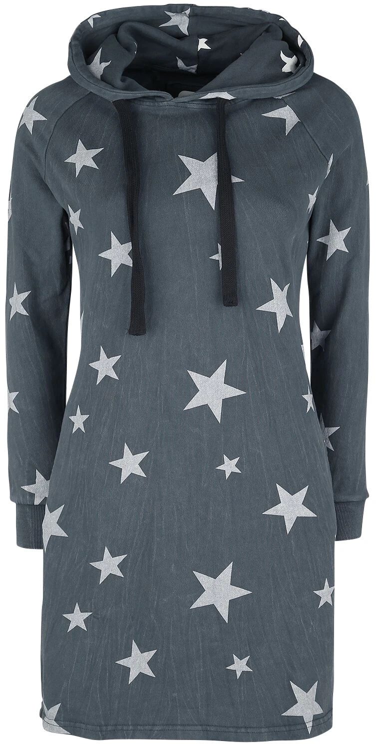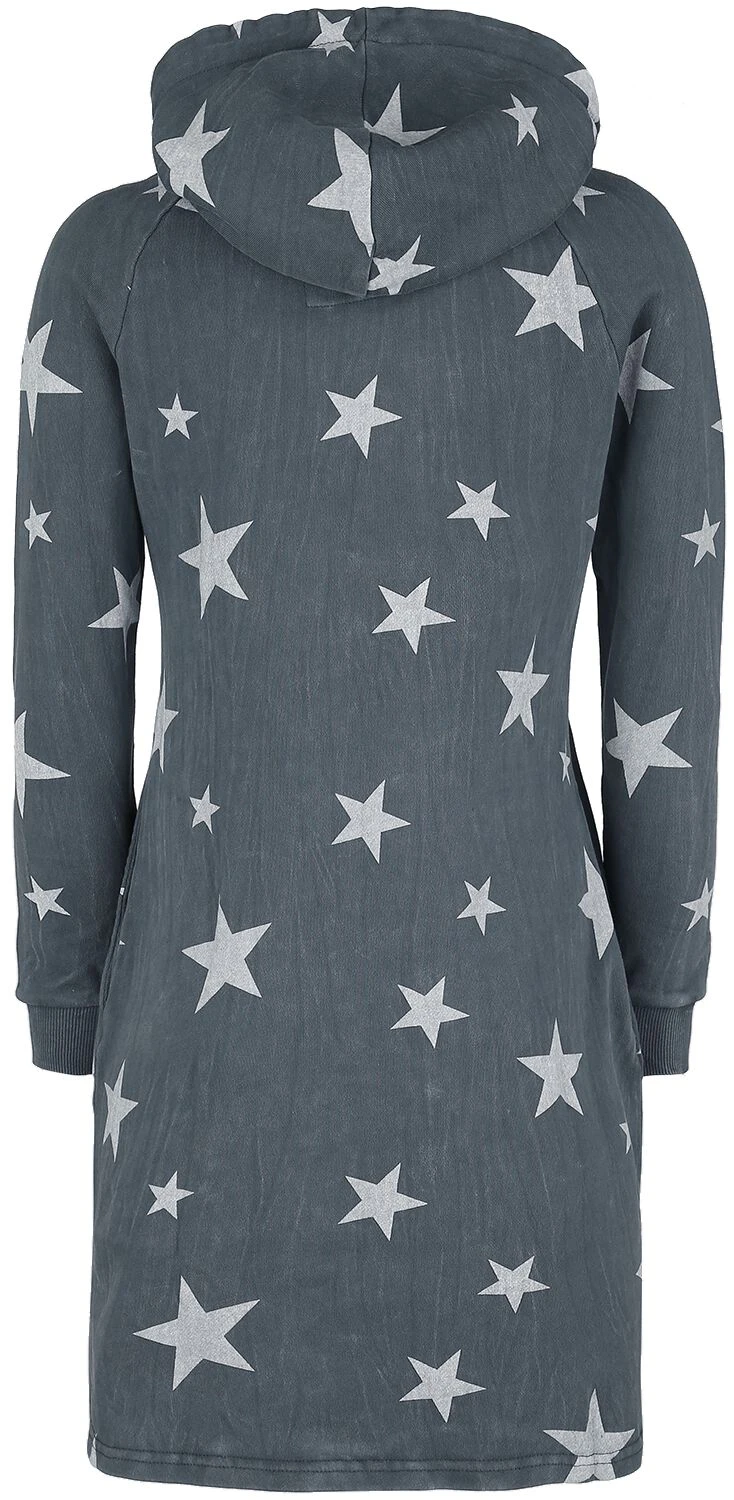 Wenn Du in der kalten Jahreszeit nicht auf einen coolen, femininen Style verzichten willst, bieten wir exklusiv von RED by EMP das kurze „Cuddle Me“-Kleid in coolen Navy-Farben. Das Kleid ist mit einem Allover-Sterne-Print inszeniert und bietet Dir als lässigen Akzent eine Kapuze mit Tunnelzug. Bequemlichkeit steuern Rippbündchen bei.