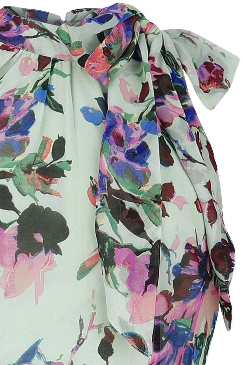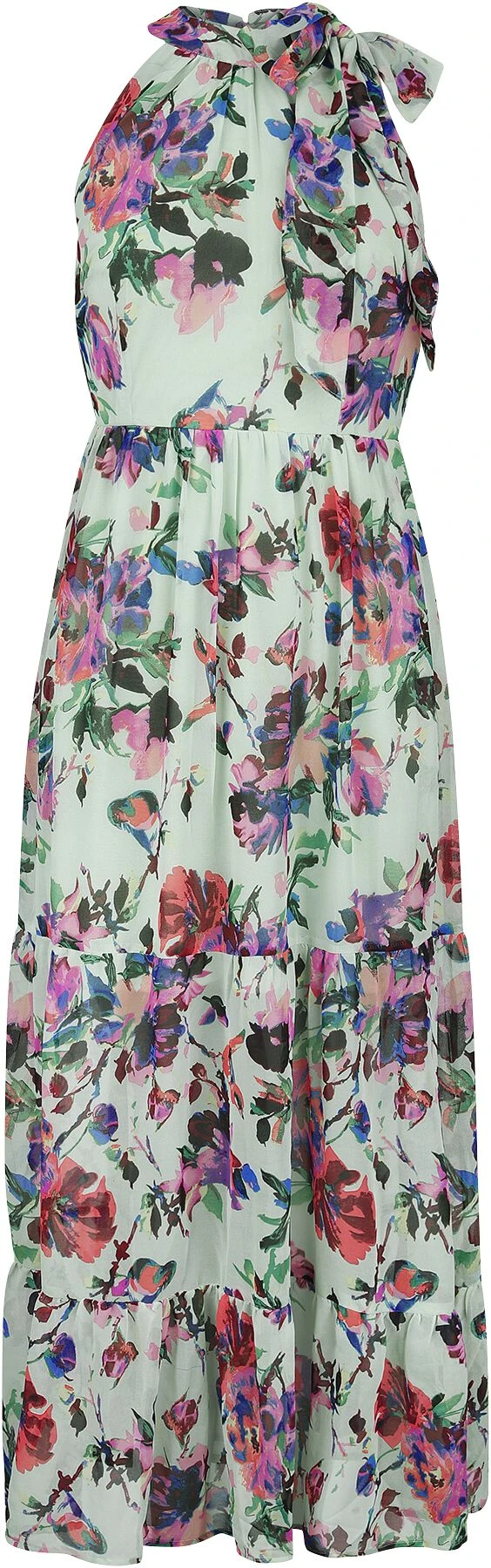 „Floral Print Tie Neck Maxi Dress“ Langes Kleid Multicolor Von QED London