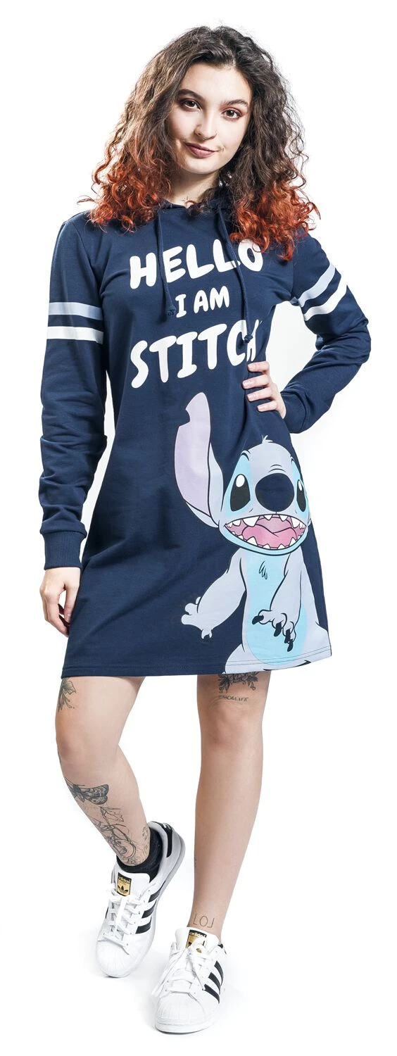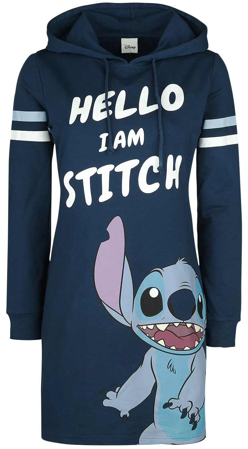 Das Kapuzenkleid „Hello I’m Stitch“ in Blau ist genau richtig, wenn du ein neues Lieblingsstück suchst, das deine Fan-Garderober erweitert. Das Kleid ist mit bedruckten Ärmeln und mit einem tollen Druck auf der Vorderseite ausgestattet. Die langen Ärmel und der Rundhalskragen sind klassische Details, machen das Kleid dafür aber auch super tragekomfortabel bei allen Anlässen. Das Kleid ist ideal für den Ausgehabend oder andere Gelegenheiten konzipiert, damit du dabei nicht auf deine Disney-Lieblinge verzichten musst.