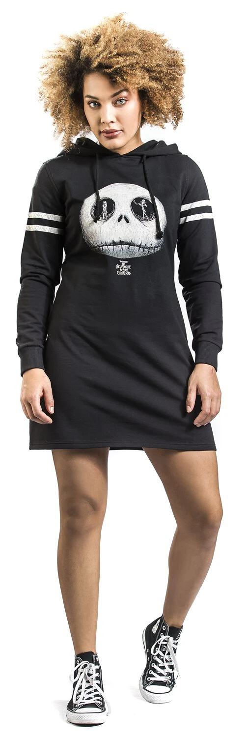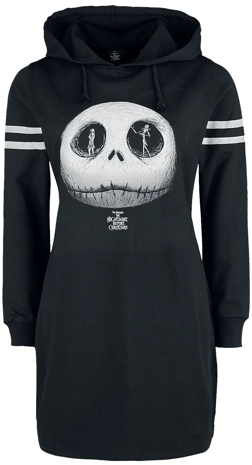 Exklusiv bei EMP: Jack Skellington ist in „The Nightmare before Christmas“ gelangweilt vom ewig gleichen Halloween-Fest und will Weihnachten feiern. Die schüchterne Zombiedame Sally ist nicht so überzeugt davon. Beide werden auf diesem mittellangen Kleid „Jack Skellington – Skull“ gefeiert. Es ist auf der Vorderseite und an den Ärmeln bedruckt und innen aufgeraut. Die Kapuzenkordel kannst Du entfernen. Das Kleid schließt mit Rippbündchen ab. Es besteht aus Baumwolle und Polyester.