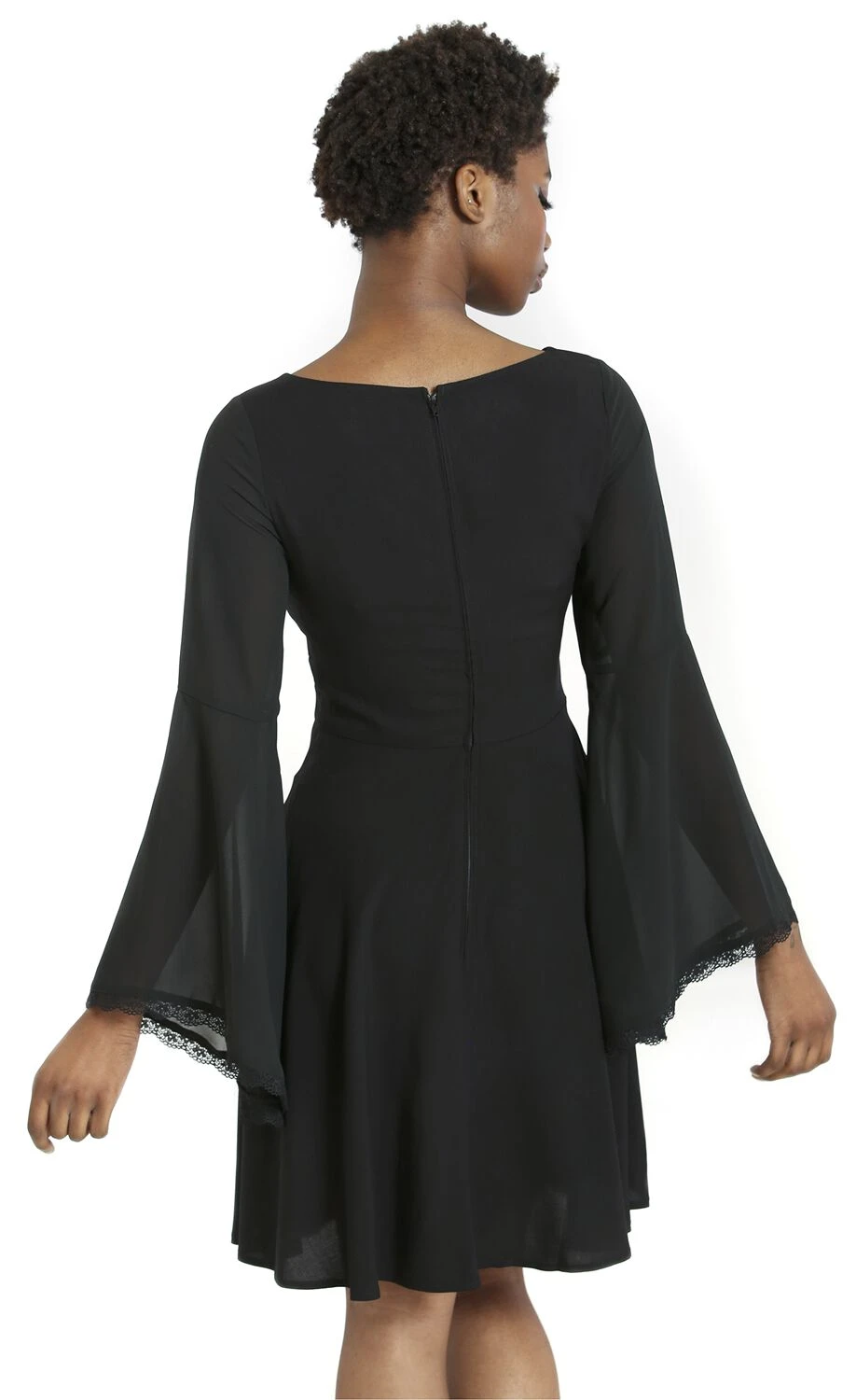 Jeder hat es, jeder liebt es – ein Minikleid im klassischsten Farbton der Welt. Das „Jett Mini Dress“ in Schwarz von Hell Bunny ist das ideale Lieblingsstück für viele Trageanlässe. Warum? Dafür gibt’s gleich mehrere Argumente. Fangen wir mit dem offensichtlichsten an. Die wunderschönen ausgestellten Ärmel mit der abgesetzten Spitze sind sehr feminin und unterstreichen deine Weiblichkeit. Am Dekolleté ist das Dress mit einer Schnürung ausgestattet, weshalb dein Oberkörper wunderbar in Sezen gesetzt wird. Der Reißverschluss am Rücken ist ein klassisches Detail, hilft dir aber beim An- und Ausziehen. Die kurze Minilänge betont deine Beine und umspielt im ausgestellten Schnitt deine Figur. Um diesen Style abzurunden, darf ein paar hübscher Heels oder Pumps nicht fehlen. Mit Lederjacke wird daraus ein rockig-cooler Look!