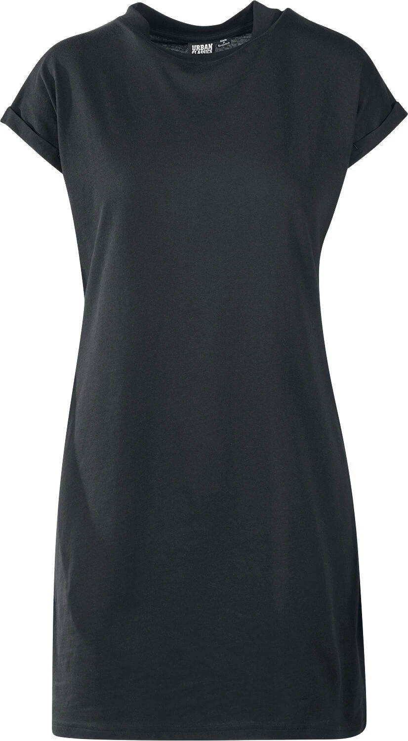 Dieses Kombi-Wunder von Urban Classics kannst du als Kleid oder als Shirt tragen. Es ist extra lang und locker geschnitten und passt somit auch super zur Leggings. Ansonsten hat der „Ladies Turtle Extended Shoulder Dress“ ganz klassisch kurze Ärmel und einen Rundhalsausschnitt. Das schwarze Kurze Kleid besteht aus reiner Baumwolle.