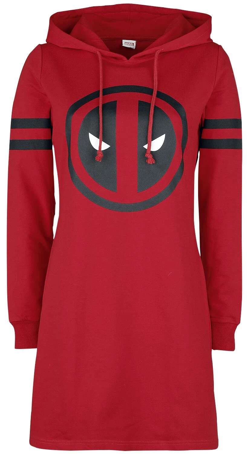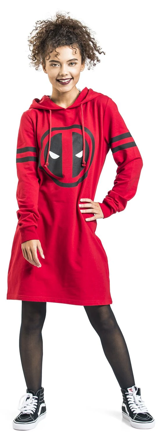 Deadpool zeigt sich dir jetzt für den nächsten Ausgehabend mit dem Kleid „Logo“ in Rot. Das Kleid ist mit einer tollen Kapuze mit Tunnelzug ausgestattet. Das verleiht dem femininen Teil eine ziemlich lässige Note. Optisch ist es allover im Sternen Print und mit Rippbündchen für besseren Halt ausgestattet. Zwei Reißverschlusstaschen rundens ab.