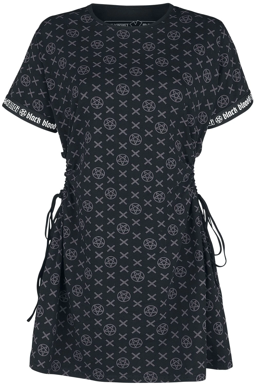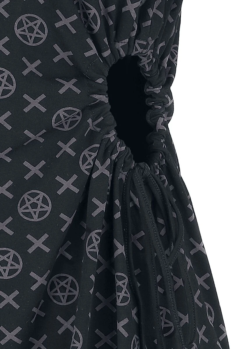 – schwarzes T-Shirt Kleid mit grauem Allover- Print