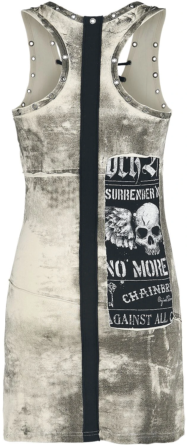 WOW – das „Stay A Little Longer“-Kleid im kurzen Schnitt von Rock Rebel by EMP macht dich bei jedem Auftritt zum Hingucker. Die individuelle Waschung macht jedes Teil zum Unikat. Hingucker sind zum einen die dekorative Schnürung am Halsausschnitt als auch der flächige Print auf Front und Back sowie die hinterlegten Cutouts.
