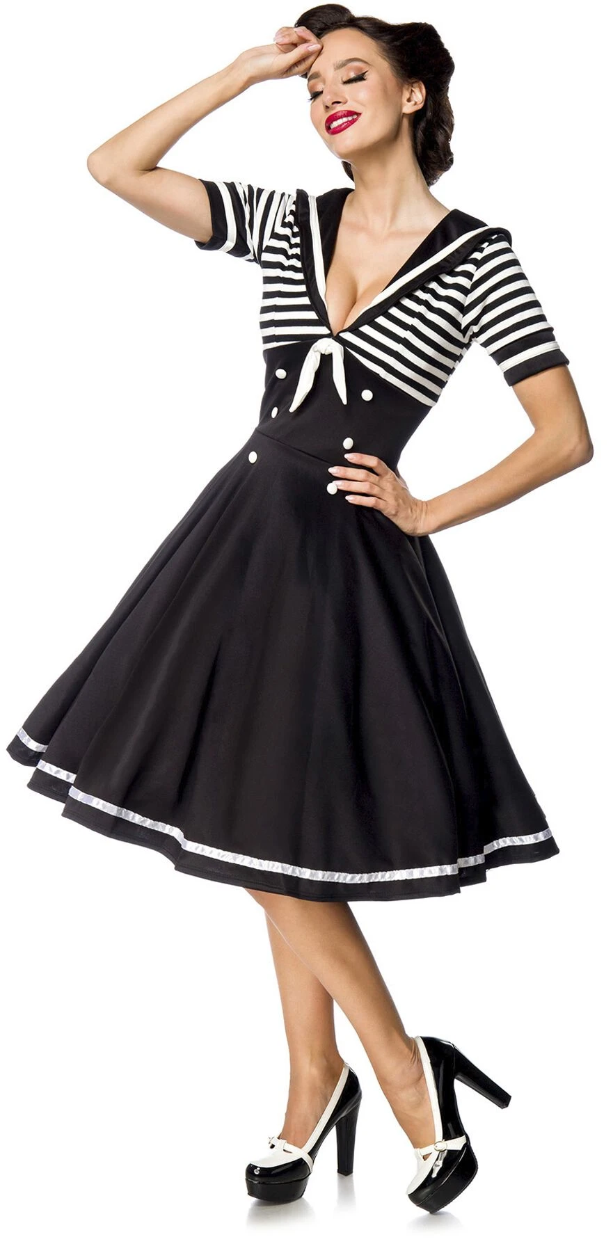 „Swing-Kleid Im Marinelook“ Mittellanges Kleid Schwarz/weiß Von Belsira